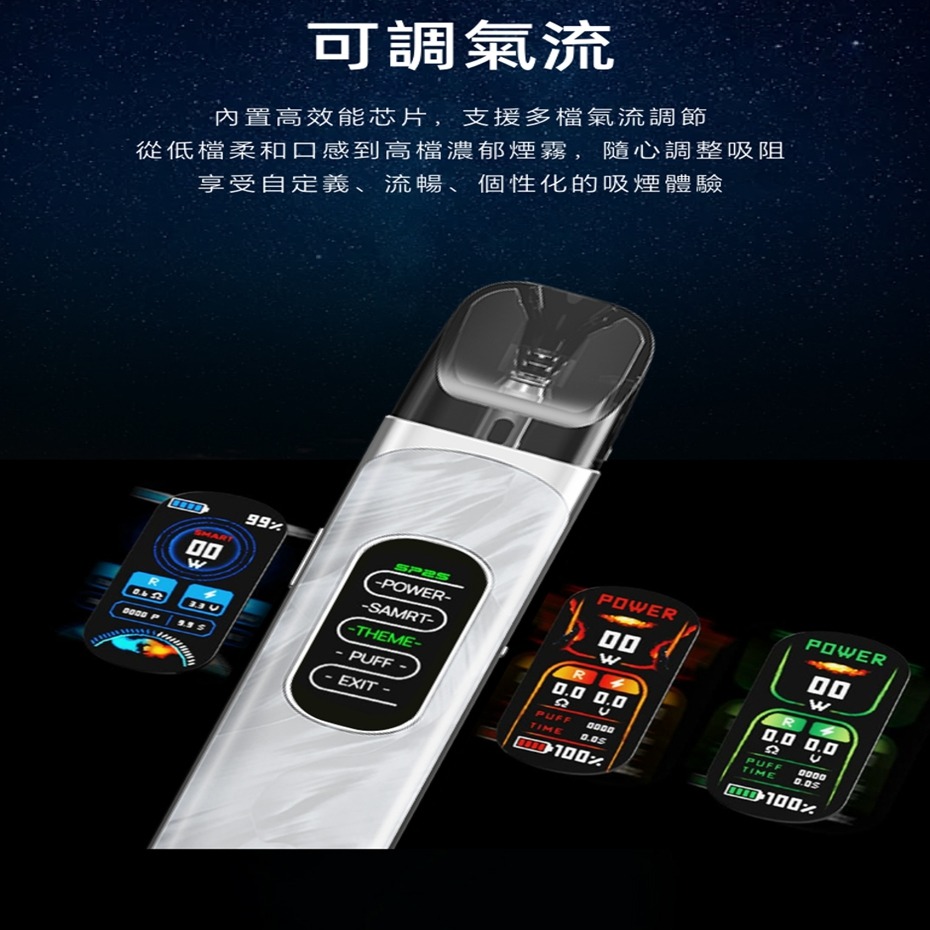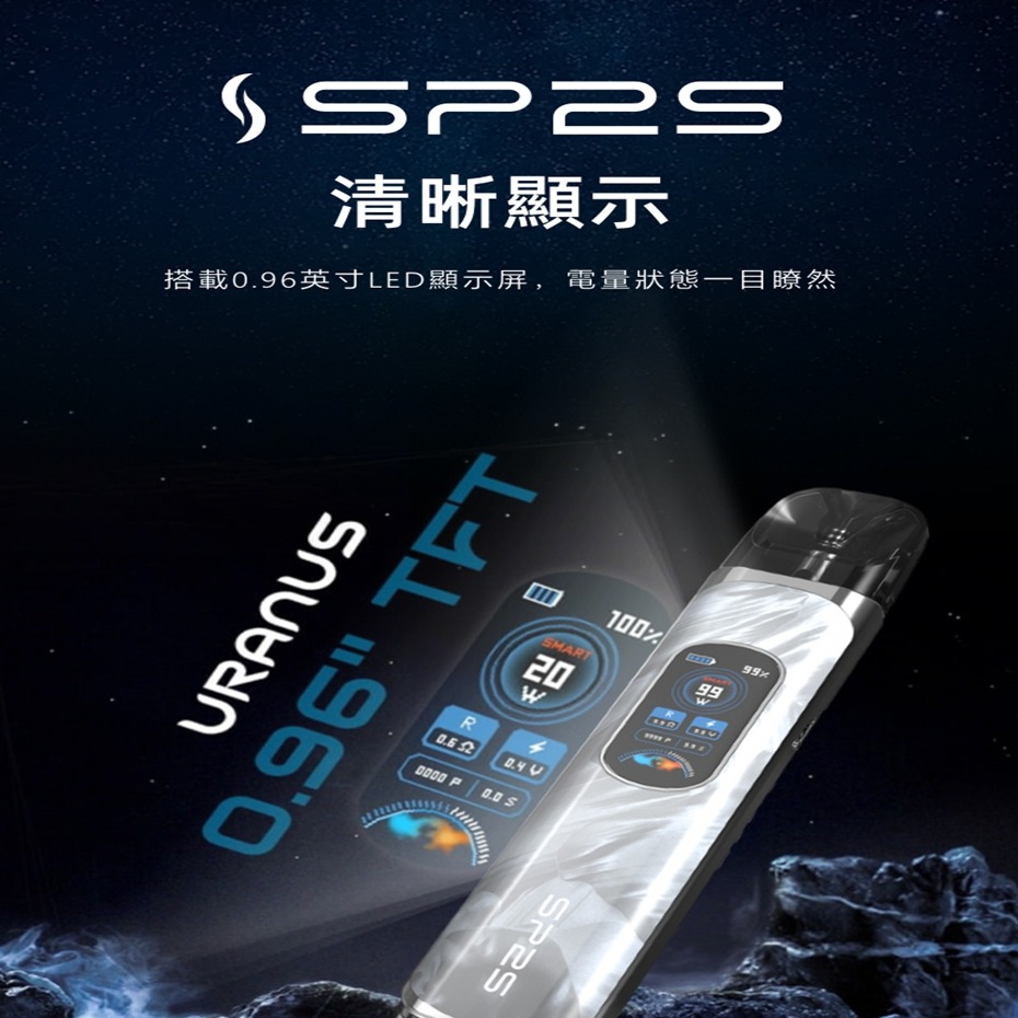 SP2S天王星是一款由SP2S(思博瑞)品牌推出的注油式電子煙主機,以「天王星」為名,強調其高功率、多檔調節的性能和穩定、純淨的吸煙體驗。 該設備具有1000mAh電池容量,最大功率30W,使用Type-C充電,並配備0.6Ω和0.8Ω的空彈電阻。