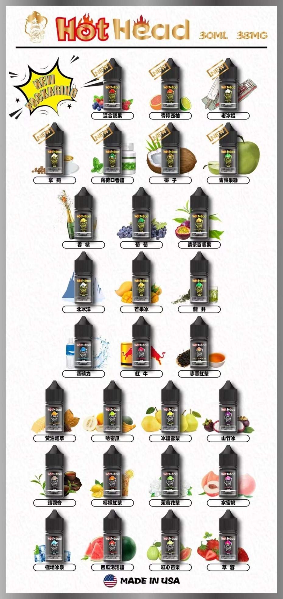 Hot Head 爆脾氣丁鹽煙油 30ml|38mg 高濃度尼古丁|小煙專用|美國原裝正品,25種果香與菸草口味,層次豐富、入口爆發,重度菸民首選,食品級安全原料,便攜設計,提供真實過癮吸菸體驗。