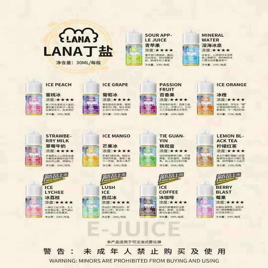 LANA 電子菸油以 “極冰口感” 和便捷性為核心賣點,通過陶瓷芯霧化技術和尼古丁鹽應用,為用戶提供高還原度的口味體驗。